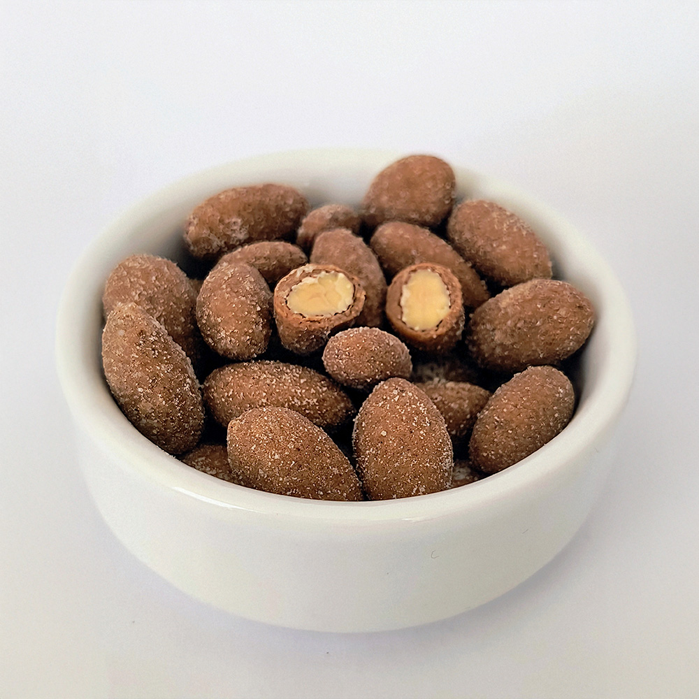 Ingredientes: Amêndoa Caramelizada com Especiarias, Chocolate de Doce de Leite, Açúcar e Canela